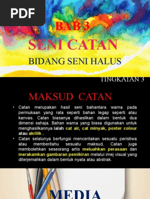 Tingkatan 4 Seni Catan Part 3 - Media CatanVideo siri 3 ini mengupas topik berkaitan media bahan yang digunakan dalam catan. Seni Catan Other contents. Penulisan di pautan ini beri beberapa idea untuk menghasilkan catan media campuran.