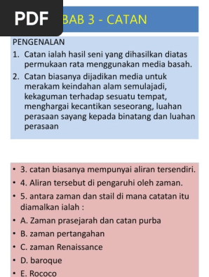 Seni Catan Tingkatan 5 Arts Quiz Quizizz