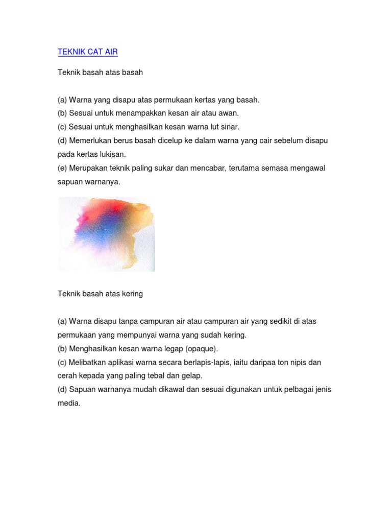 Teknik Basah Atas Basah Catan Senivisualize Wordpress Com Teknik Basah Atas Kering A Warna Disapu Tanpa Campuran Air Atau Campuran Air Yang Sedikit Di Atas Permukaan Yang Mempunyai Warna Yang